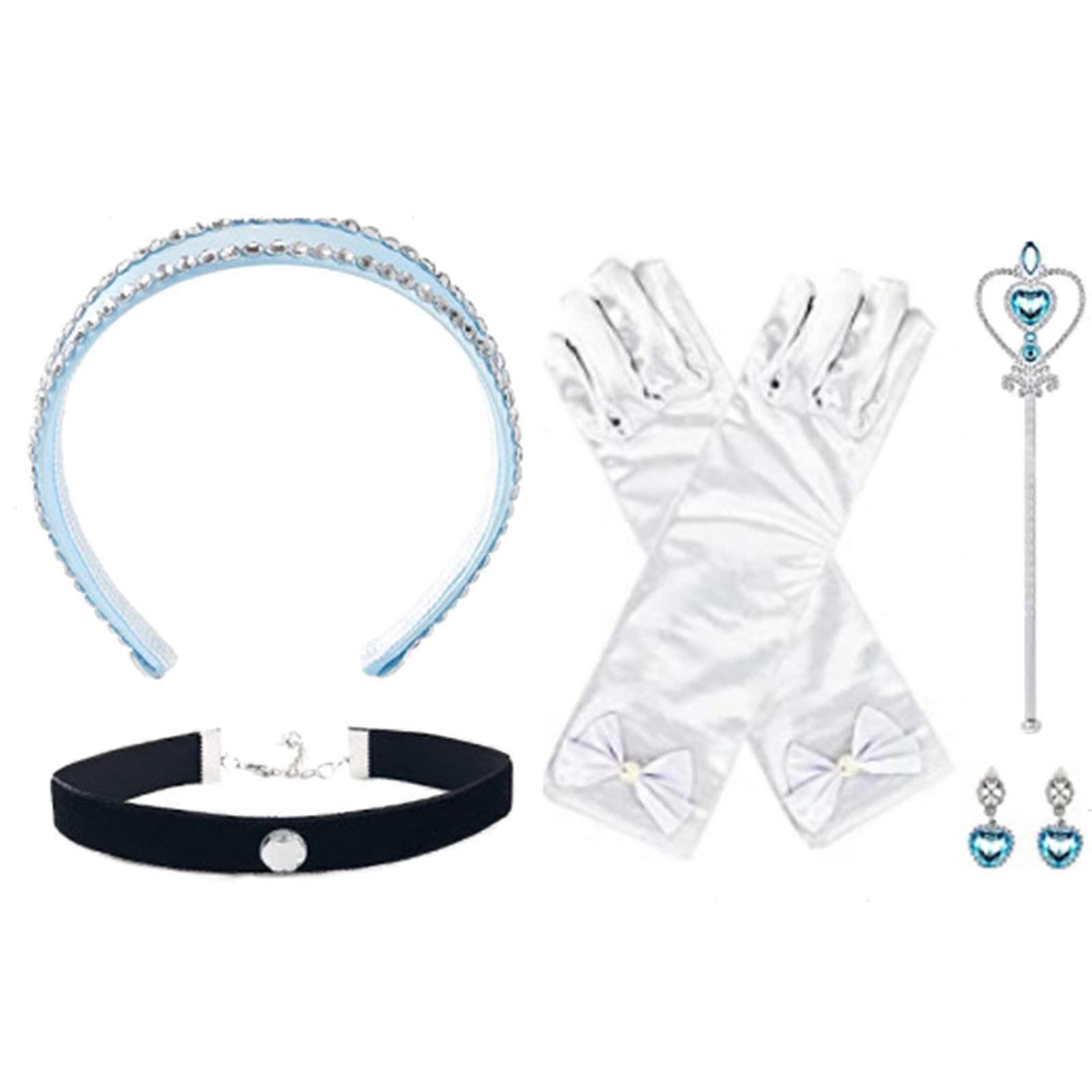 Princess Dress Up Accessory, Set of Six Cosplay Set Dress Up Set for Girls with Crown, Wand, Gloves, Necklace, Earrings