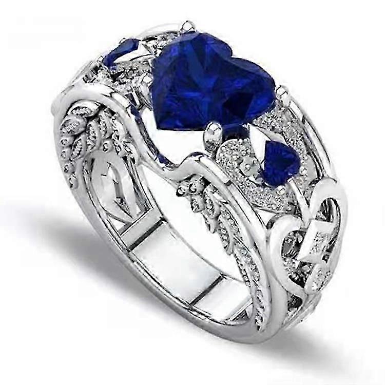 Princess Heart Red Blue Clear Zircon Sapphire Ring Jewelry New Arrival