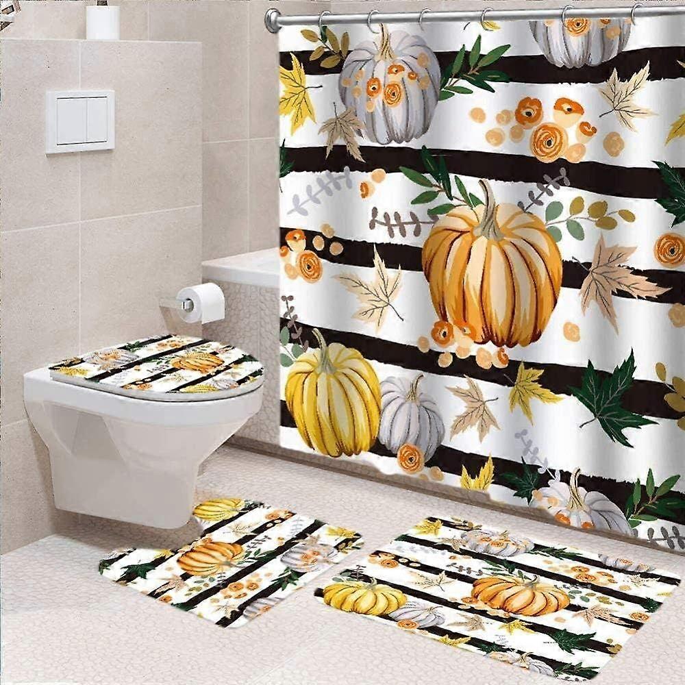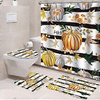 4 in 1 Bathroom Shower Curtain Bath Mat Size: Shower curtain: 180x180cm. U-shaped cushion: 37x45cm. Toilet cover: 42x37cm. Bath mat: 45x75cm. The size of this bathroom is suitable for most bathrooms.