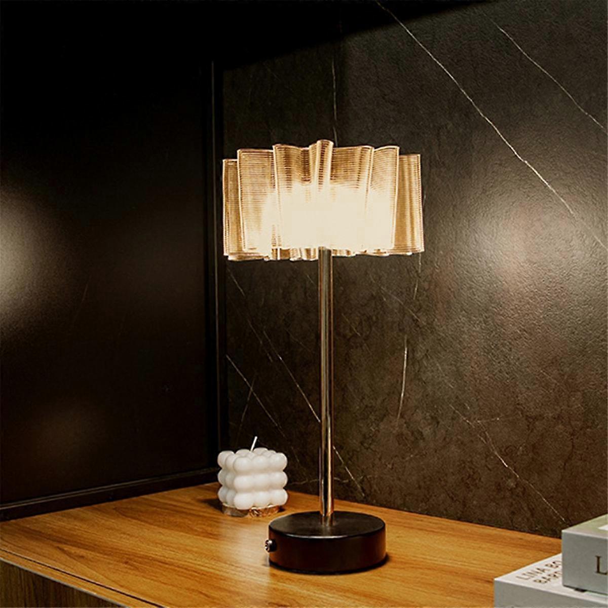Pleated Bedside Lamp Charging Table Lamp for Bedroom Lamp Restaurant 3-Level Brightness Atmosphere