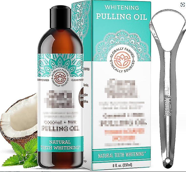 Pulling Oil, Alcohol Free Mouthwash for Fresh Breath White Teeth & Healthy Teeth & Gums, Coconut & Peppermint Oil Pulling with Tongue Scraper