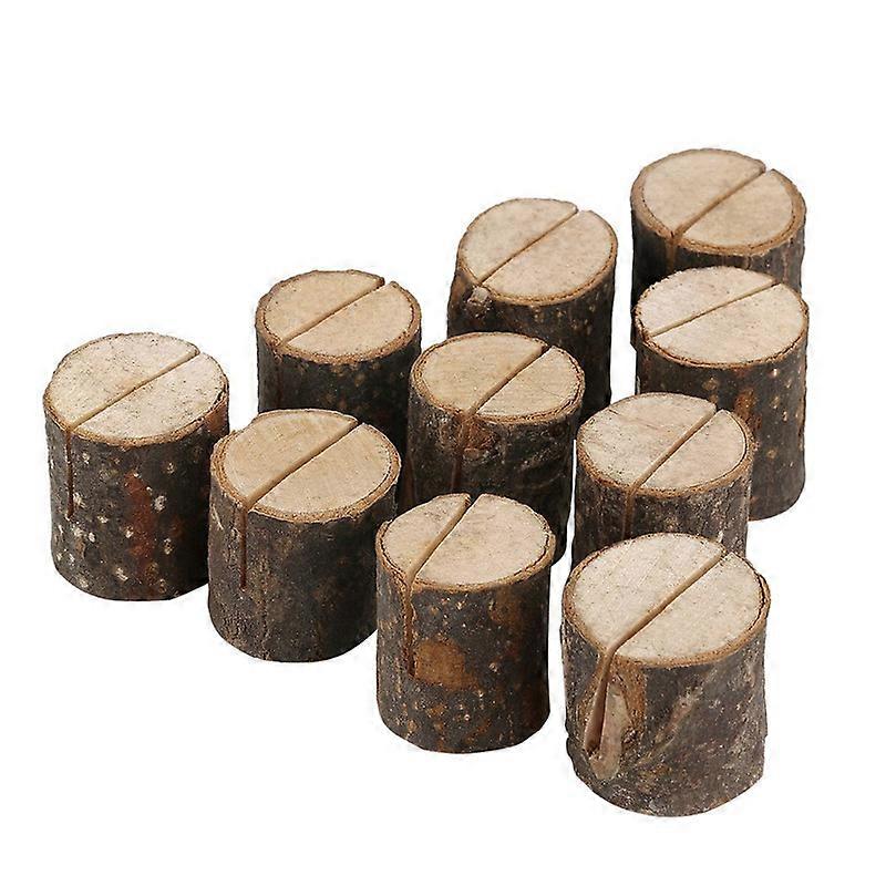 Place Card Holders, Rustic Real Wood with Wooden Bark Table Card Holder, Number Photo Stand Place Name (Wood Color 20Pcs)