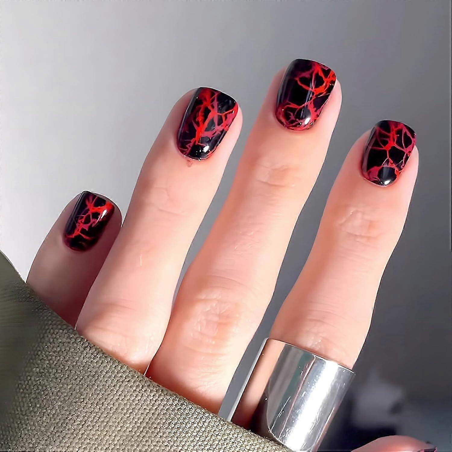Press On Nails Short Square Fake Nails Black Stick On Nails Full Cover Artificial Fake Nai