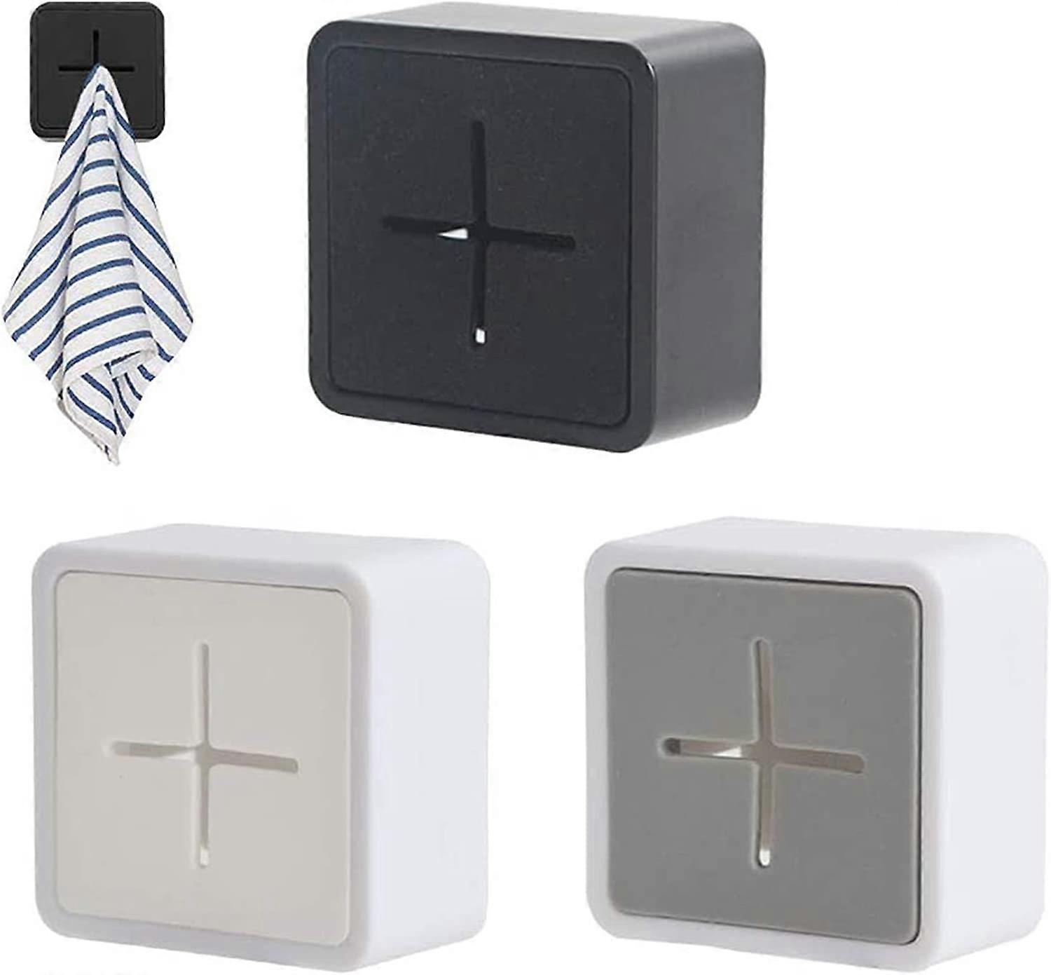 Premium silicone self-adhesive towel hook anti-collision square wall mounted towel rack for bathroom kitchen, (white, grey, black)(3PCS )