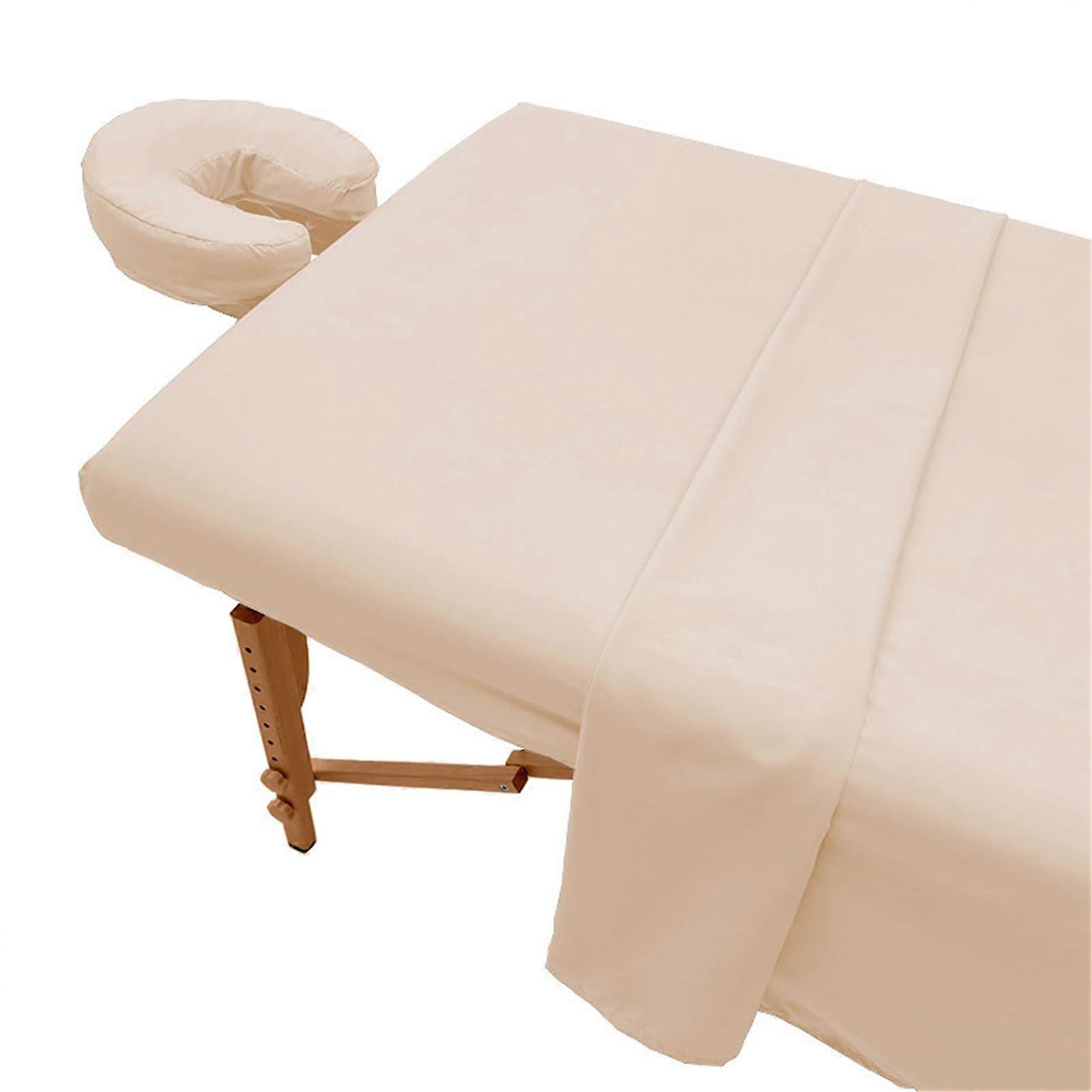 Premium Beauty Spa Salon Massage Table Cover Set, 3-Piece Polyester Linen, Champagne Color, 185 cm x 80 cm