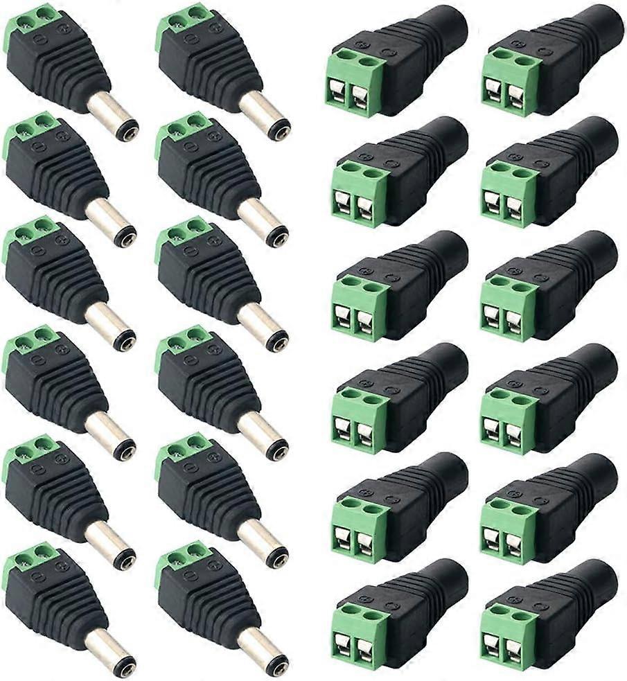 Premium 5.5 X 2.1mm DC Power Connector Plug Socket Kit, 12V / 24V Male & Female DC Power Connector Adapter, 2 Pin DC Screw Terminal Connector, for CCT