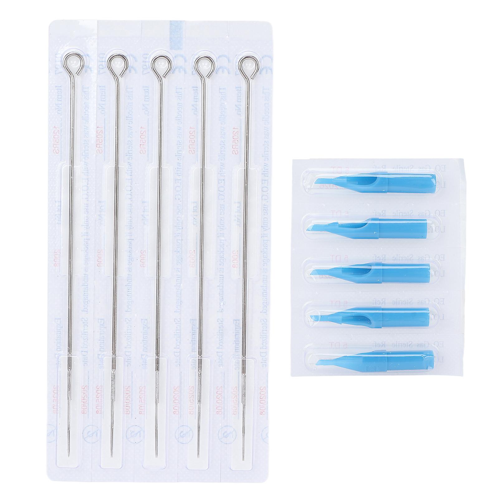 Item Type: Tattoo Needles Tips Set <br>Material: Food grade stainless steel, plastic <br>Wire Diameter of Each Tattoo Needle: Approx. 0.35mm / 0.01in <br>Quantity: 50pcs tattoo needles + 50pcs tattoo needle tips <br>Applicable People: Tattoo artists, tattoo beginners <br>Applicable Machine: Tattoo pen, motor machine, coil machine<br>1、Stainless Steel: Food grade stainless steel needle wire, not easy to rust, high safety. <br>2、Different sizes Tattoo Tips: A total of 50 tattoo tips in the package, which are designed for different sizes of tattoo needles. <br>3、Portable: Small and light, individually packaged, very portable, it does not take up space in the bag. <br>4、Suitable: The tattoo needle can be kept on the center line of the needle tips without impurities when installed in the needle tips. <br>5、Safety and Hygiene: Each tattoo needle and tattoo needle tip are individually packaged after autoclaving, which is safe and hygienic.50 x 5RS Tattoo Needles<p>50 x 5DT&nbsp;Tattoo Needle Tips</p>