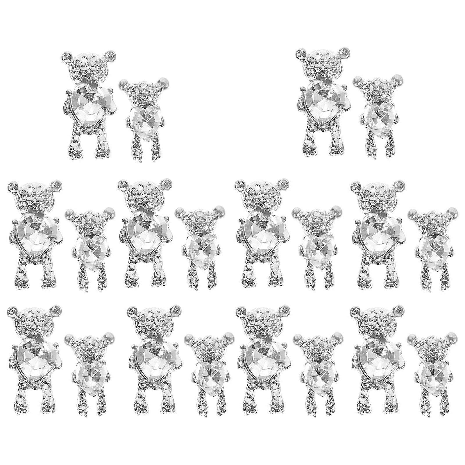 Bear Nail Embellishments For Professional Manicurists Christmas Celebrations 1.1x0.7x0.7cm Silver Compact Size 20Pcs