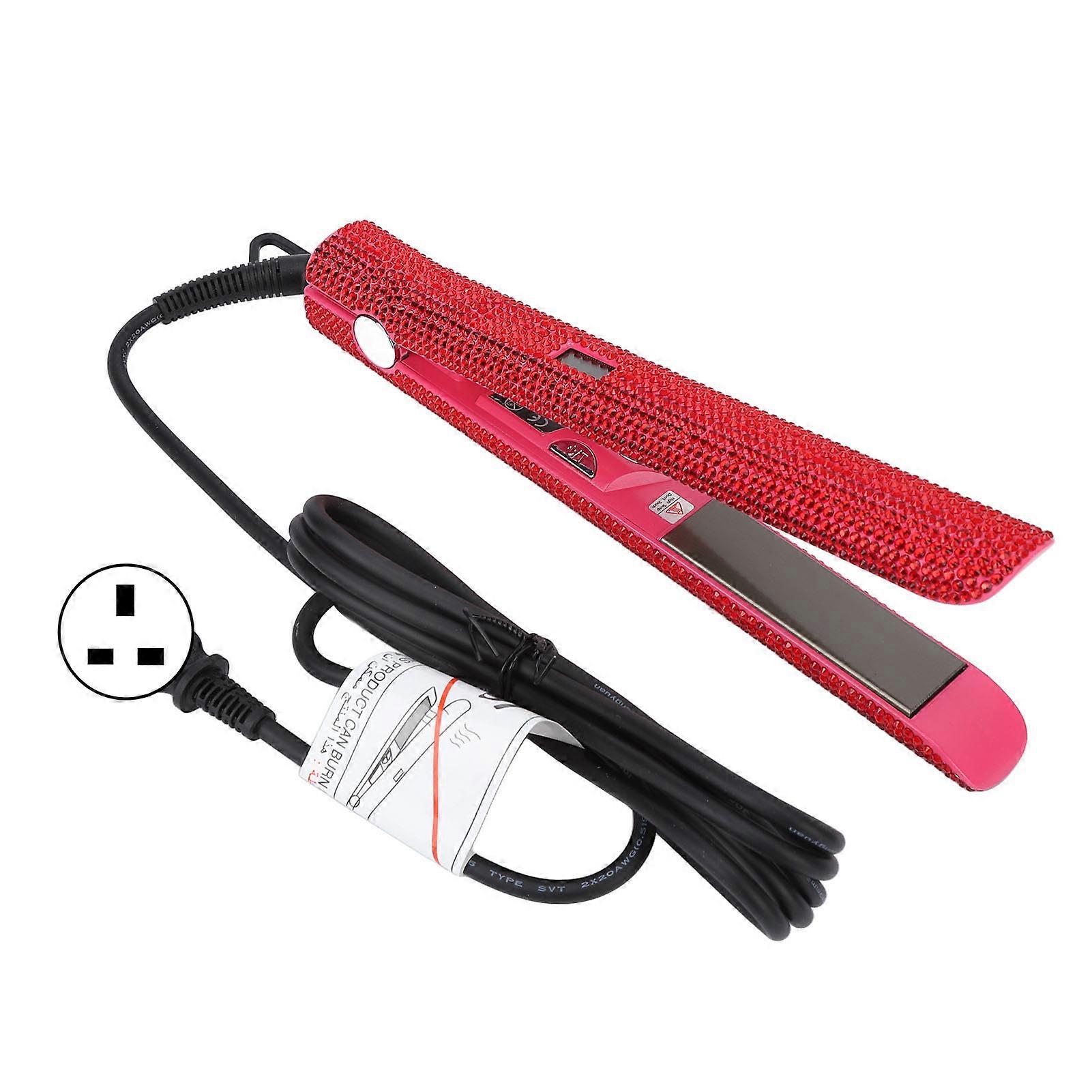 Professional Red Hair Straightener Titanium Curler Straightening Curling Rhinestone Flat Iron Uk Plug 220v