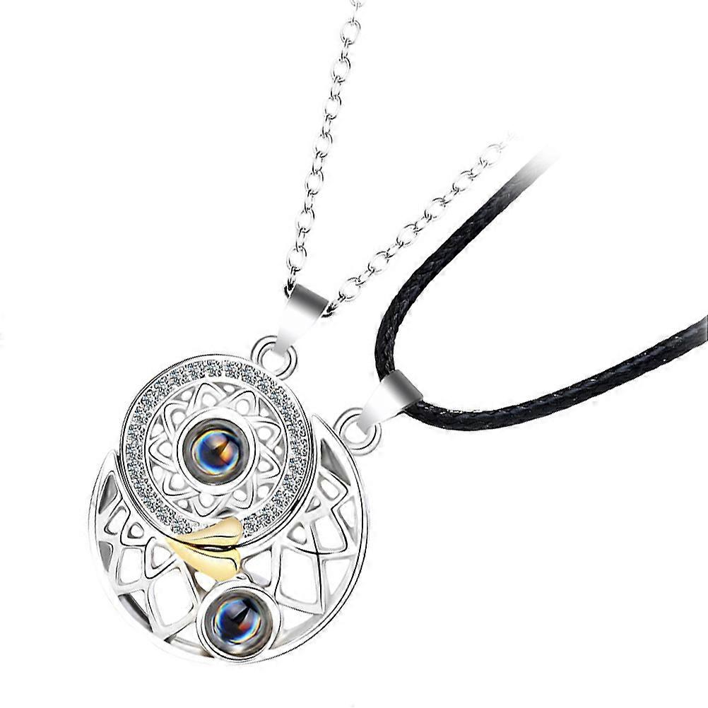 Projection Necklace Sun and Moon Jewelry for Couples with Splicing Design 2.6x2.4cm 1Set