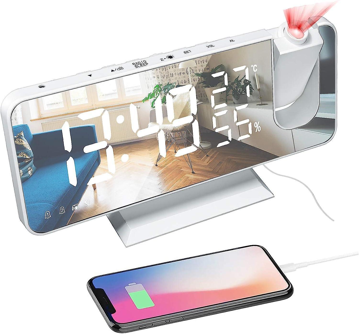 Projection Alarm Clock, LED Digital Alarm Clock Bedside Mains Powered 2 Alarm Clock Snooze Mirror De