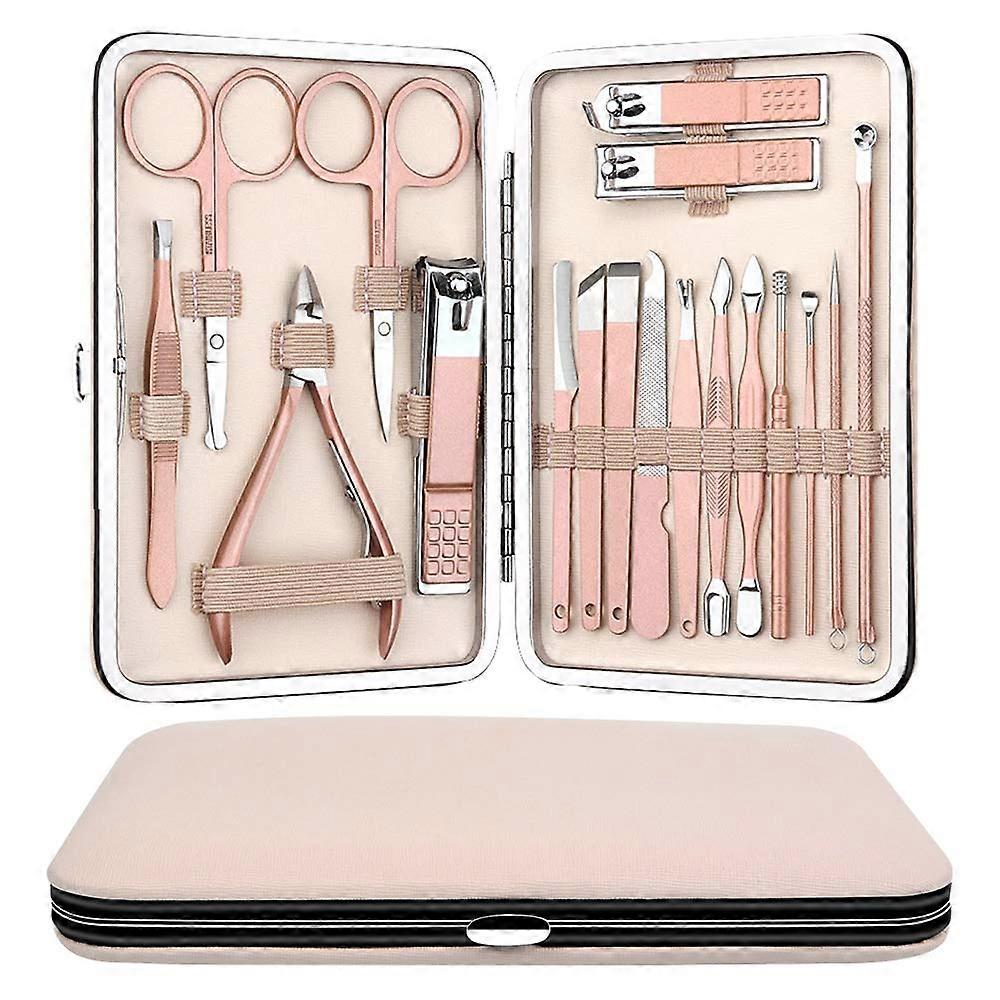 Professional Grooming Kit, Pedicure Kit for All Nail Trims, Rose Gold Stainless Steel Tools, Travel-friendly Case, 18 Pieces in Pink (Portable Travel