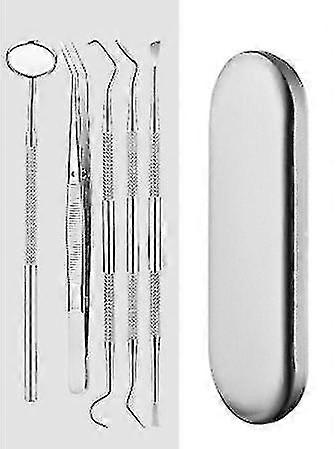 Professional Dental Kit - 5 Pieces: Mirror, Jawbone, Sickle Scraper, Tartar Scraper, Double-ended Ch