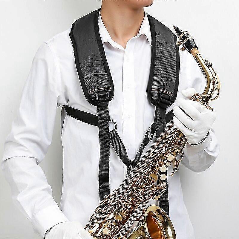 Professional Harness Padded Leather Saxophone Shoulder Strap for Baritone Alto Tenor Soprano Sax Music Accessories Black
