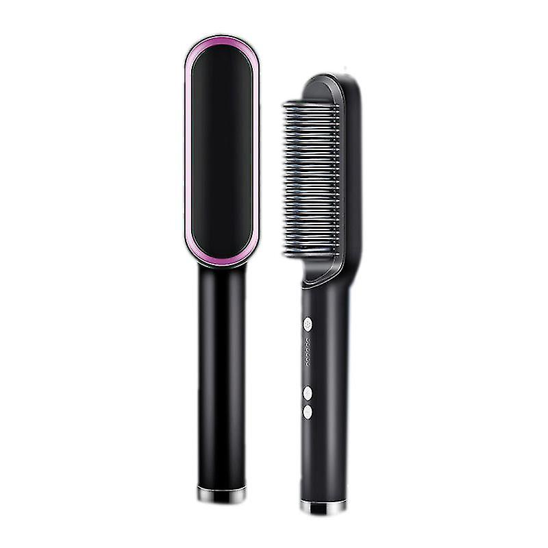 [Double Ion Generator for Healthy, Silky Hair] This straightening brush seals the hair cuticle, reduces split ends and tangles, and leaves your hair looking naturally smooth, silky and shiny.[Temperature lock and auto shut off] Press and hold the "+" and "-" adjustment keys for 3 seconds to lock the temperature. Always ensure maximum safety and optimum performance. As a built-in safety function, if not in use, the hairbrush will automatically turn off within 60 minutes.[High Density Curly Hair Nano Comb Brush] Easily transform curly hair into straight hair in minutes.The combs not only smooth the hair, but also provide a massaging effect, benefit the scalp and stimulate the hair follicles.[More convenient to use, more convenient to travel] The power cord can be rotated 360 to straighten the hair at any angle. Most importantly, the voltage of the hairbrush is 100-240V, you can take it with you and you can achieve silky smooth hair in minutes.Delivery Quantity: 1setProduct color: blackProduct size: 270*30mm