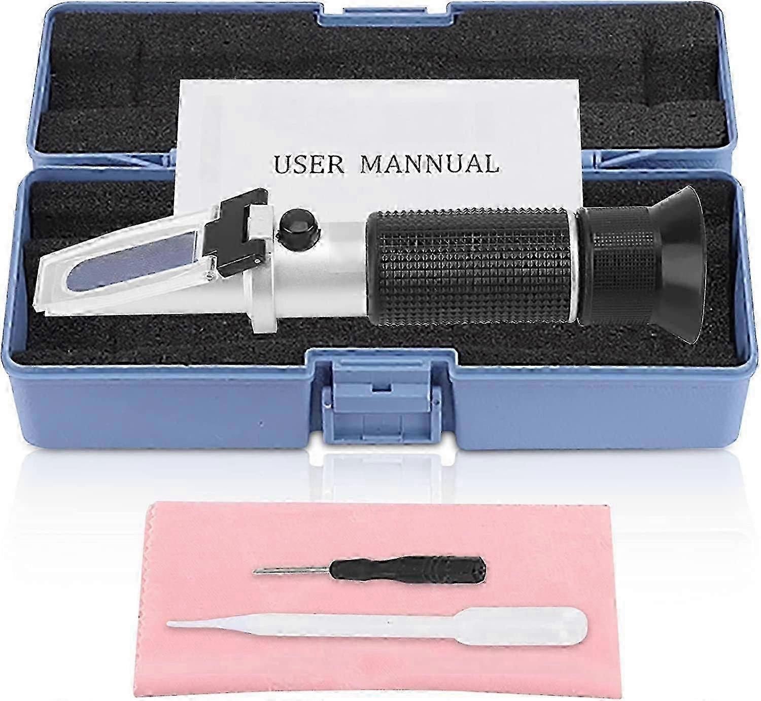 Automatic reading Sugar fractometer with automatic temperature compensation from 10 30 to 30 . Concentration area The refractometer provides a precise test result with a concentration measuring range from 0 to 32 percent . Rubber handle rubberized handle, portable and easy to use, manual calibration is easy to read and eyepiece is flexible. Broadened Ideal tool for ensuring product quality, monitoring and control of the sugar concentration in food, fruits, drinks, etc. Sugar measurement A professional measuring device for testing sugar, fruit juice, drinks, beer, etc.