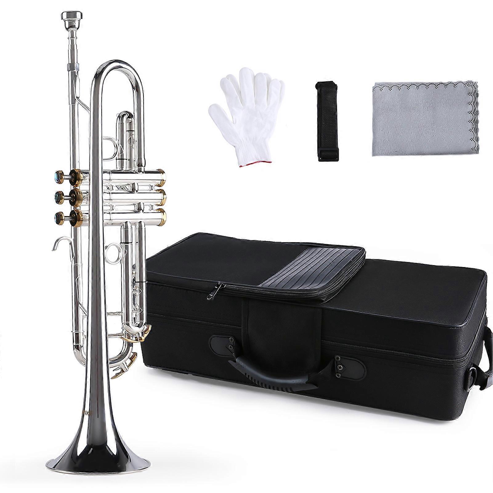 Professional Bb Trumpet Silver-Plated Brass 21.3in with 5C Mouthpiece