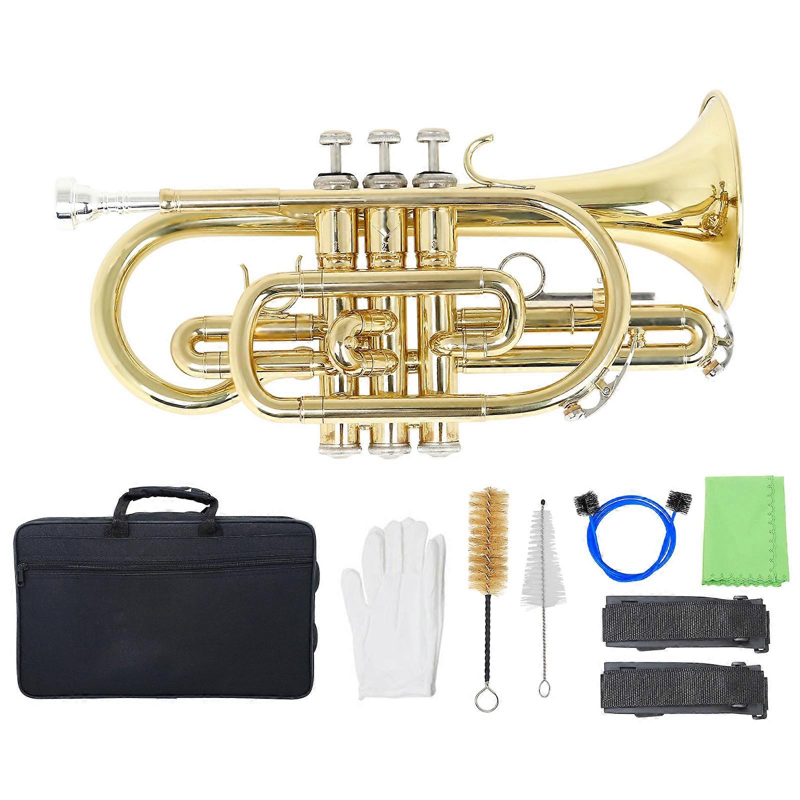 Professional Bb Flat Cornet Brass 34.5x16cm Golden with Case & Gloves