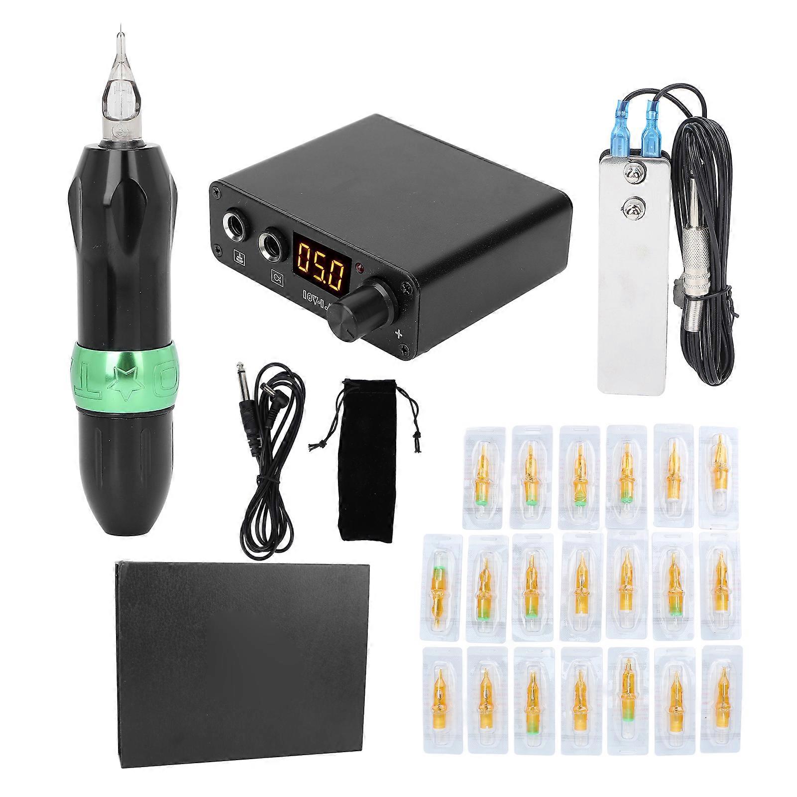 Professional Tattoo Pen Machine Set with 20 Cartridge Needles & Power Supply