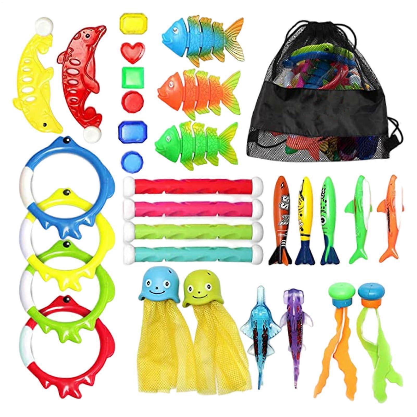 Pool Dive Swimming Toys, 30Piece Underwater Pool Toys for Summer with Storage Bag