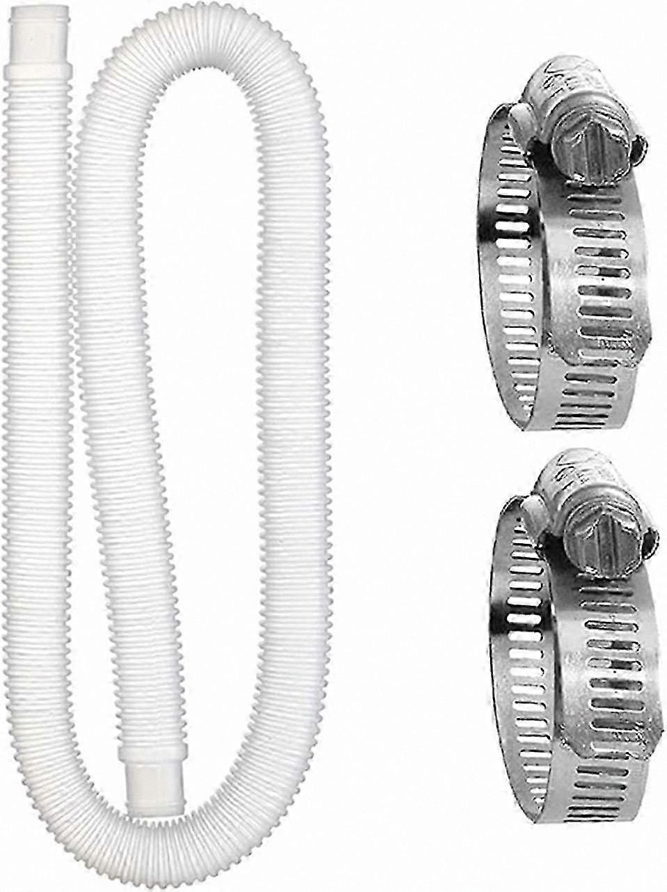 Material --- Made of high-quality polyethylene material, durable and not easy to break. Easy to bend and more flexible to use. Pool Replacement Hose --- This kit allows you to easily replace the pool hose. Includes a hose and two stainless steel clamp rings. Pressure Structure --- Made of tight, ultra-durable but soft polyethylene plastic to ensure a stable water flow. Easy to Use --- Just use a screwdriver and pliers, you can easily install a swimming pool hose replacement in a few minutes, no additional tools are required. Application --- This swimming pool hose replacement is suitable for above-ground swimming pools. Compatible with Intex pump models 330 GPH, 530 GPH, and 1,000 GPH.