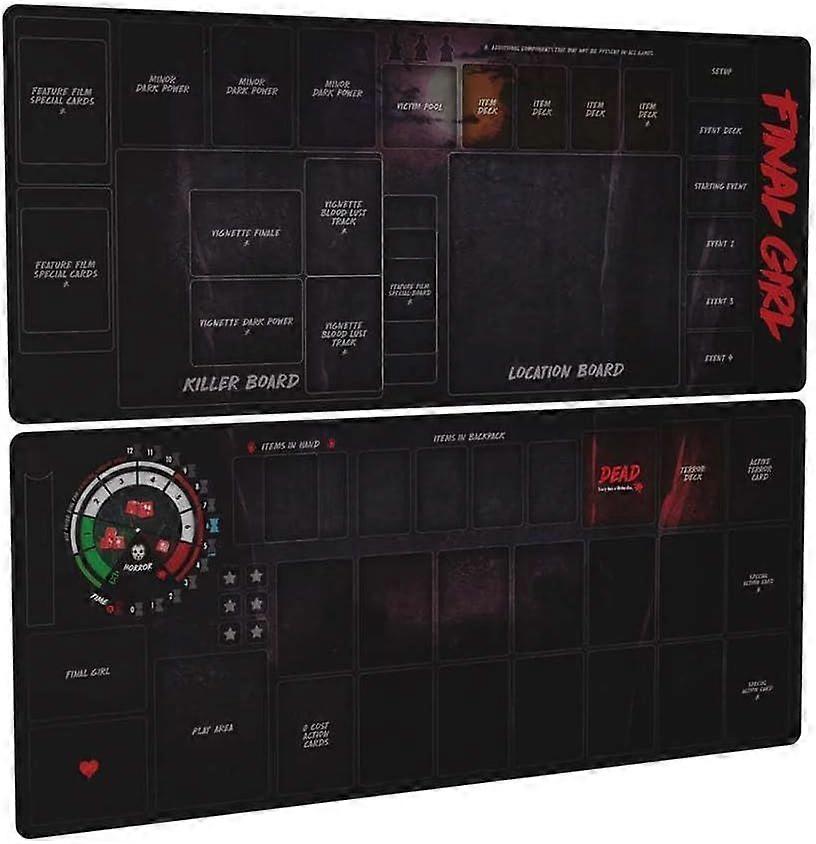 The Final Girl: Game Mat Set (Series 2) is a must-have accessory for Final Girl fans looking to enhance their gameplay experience. Officially licensed and made of high-quality neoprene, this set includes two 28" x 12" mats that perfectly complement any game in the Final Girl series. These mats offer a dedicated space for each card and component, ensuring your game setup is always organized and easy to follow. Compatible with all Feature Films in the Final Girl product line, this mat set is designed to improve the visual appeal and efficiency of your gaming area. Whether you're playing Frightmare on Maple Lane or Terror From Above, the mats are large enough to accommodate your cards, tokens, and other elements, providing a consistent layout for your game. Constructed from smooth neoprene, these mats offer more than just organization. The material makes it easier to pick up and manipulate cards during gameplay, reducing friction for a more fluid experience. Additionally, the mats roll out flat with no creases, offering a premium feel that elevates the overall game night atmosphere. Customers love the functionality of these mats, especially those who appreciate an organized setup. With clearly defined spaces for every component, the mat ensures that players know exactly where each card goes. Its perfect for players who prefer everything in its place, helping avoid confusion and streamline gameplay. If you are someone who wants to keep everything in order, these mats are a game-changer. The Final Girl: Game Mat Set (Series 2) is a top-quality addition to your Final Girl collection. Its designed to provide both aesthetic appeal and enhanced functionality, making each gaming session smoother and more enjoyable. Perfect for players aged 14 and up, this mat set is the ideal way to organize your board game and keep your cards and components in perfect order.