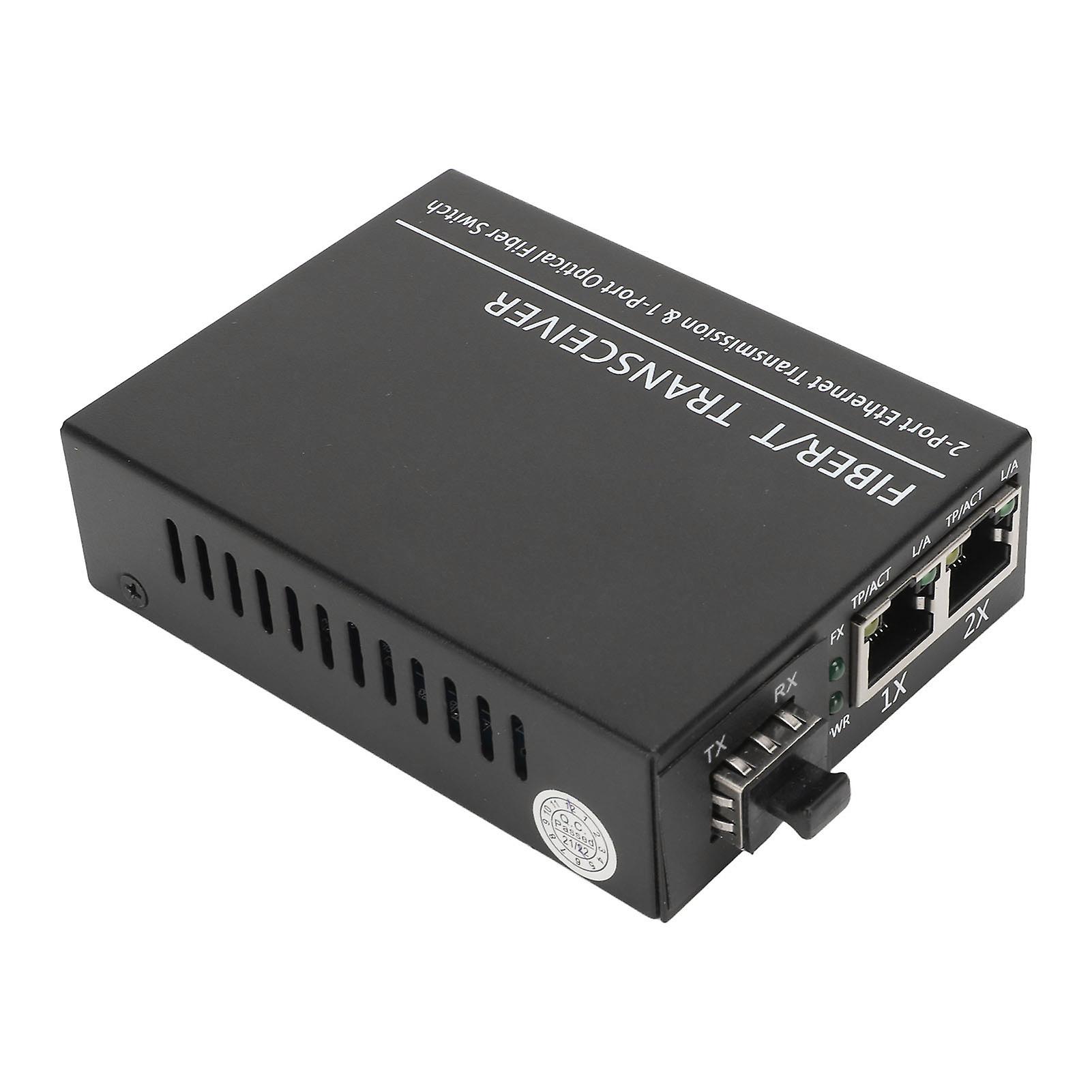 Item Type: Fiber Transceiver <br>Material: Metal <br>Plug Voltage: 100-240v <br>Supported Protocols: IEEE 802.3i IEEE 802.3u IEEE 802.3ab IEEE 802.3z1、Universal Compatibility: Applicable to single mode and multi mode optical fiber SFP modules, and fully compatible with 10/100 Base T Ethernet connections. <br>2、LED Indicator: LED indicators provide status to easily monitor network activity, compliant with IEEE IEEE 802.3/802.3u/802.3af. TX, FX LINK/ACT, POWER, FDX status, LED can easily monitor the network status. <br>3、Long Distance Transmission: When used with different types of SFP modules, the FX port can be hot switched to extend the optical fiber distance to 0?120km. <br>4、Auto Negotiate 100M Connections: The RJ45 port is automatically negotiated and supports half duplex full duplex transmission mode and automatic MDI/MDIX. <br>5、Easy To Use: Easy to use, plug and play, no need to install or configure software, simple operation, practical and convenient.1 x <br> <br>Fiber&nbsp;Transceiver<p>1 x Power Adapter</p><p>1 x User Manual</p>
