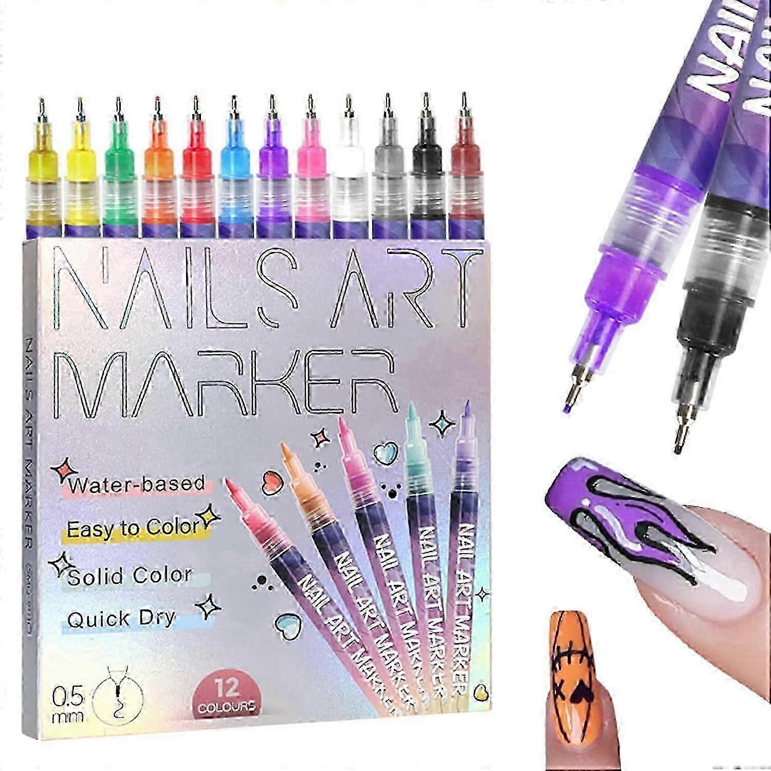 Fine Tips 3D Nail Art Pens, 12 Colors 0.5MM Nail Polish Pens Nail Point Graffiti Dotting Pen Drawing Painting Liner Brush for Home Salon Quickly DIY N