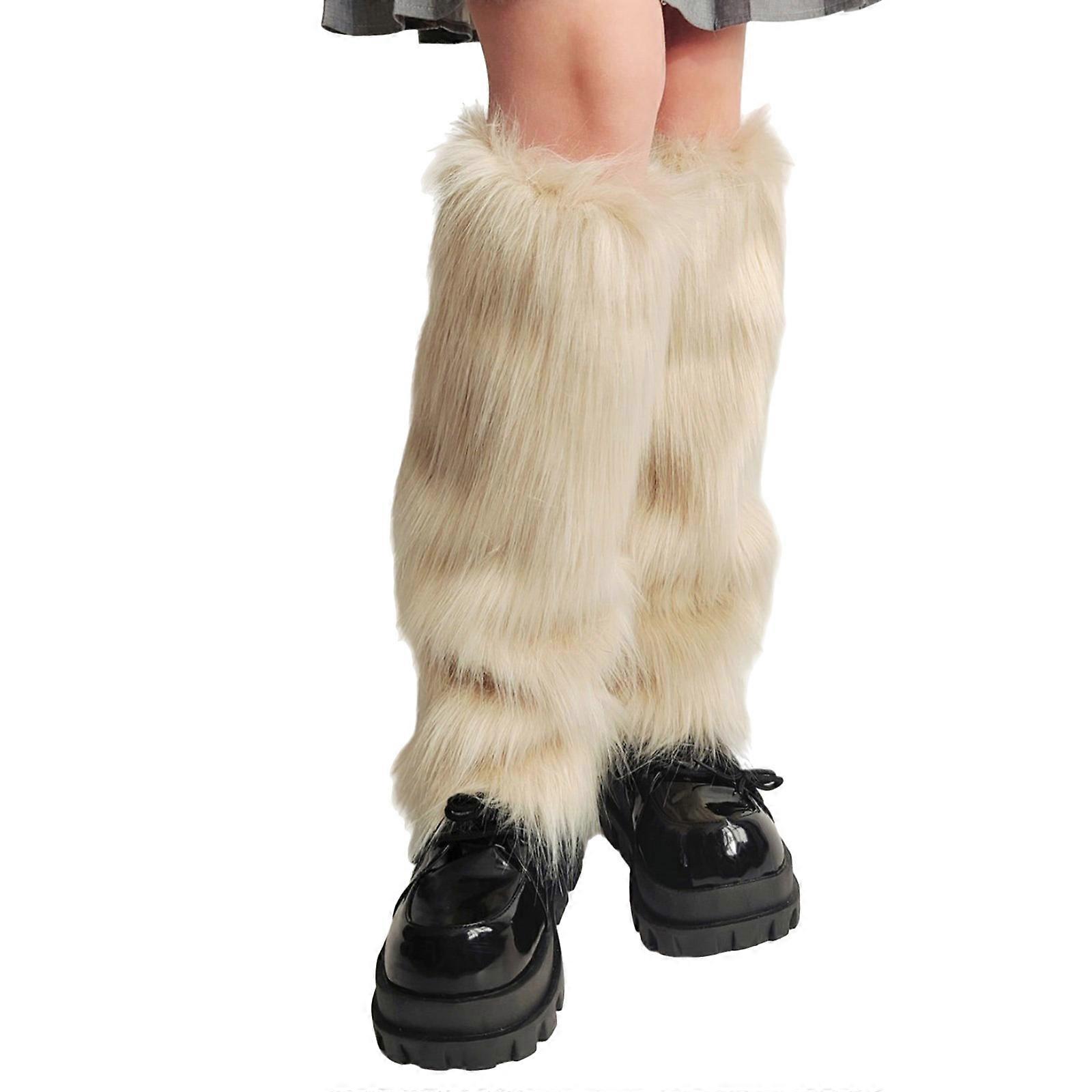 Fuzzy Faux Furs Leg Warmers Furs Heels Long Boot Cuffs Cover One Pair Carnivals Boot Cover JK Uniform Owhite 40