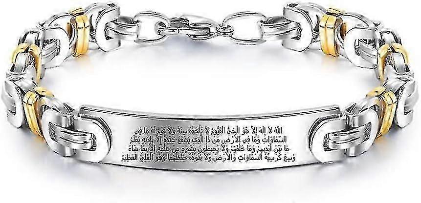 Fast shopping ForeverWill Stainless Steel Silver Gold Tone Ayatul Kursi Quran Byzantine Chain Bracelet with Lobster Claw Islamic Arabic
