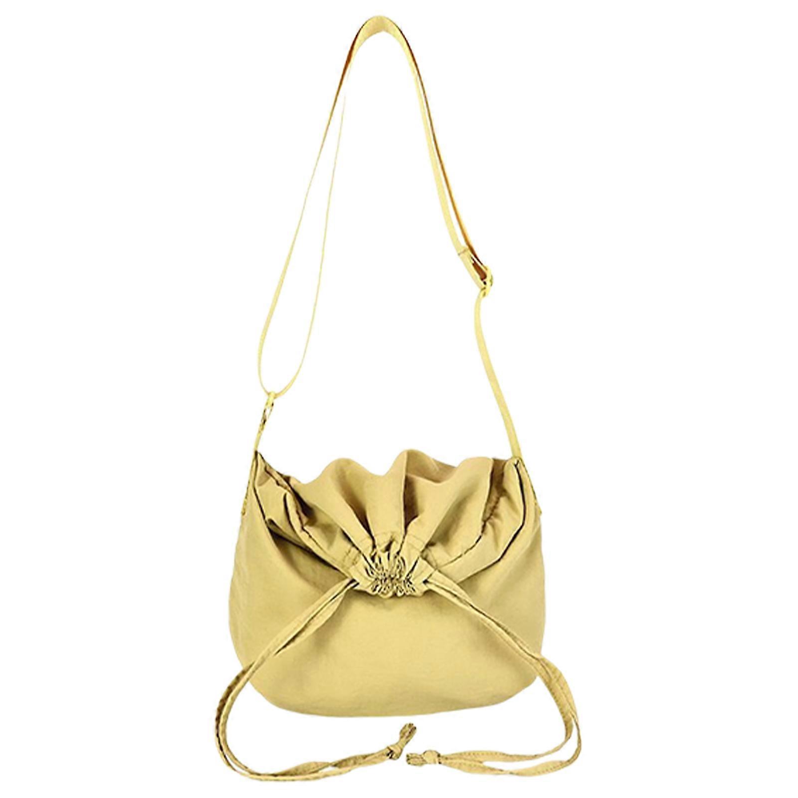 Fashionable Crossbody Bag Large Capacity Nylon Shoulder Bags Drawstring Purse Satchel With Adjustable Strap For Ladies Yellow