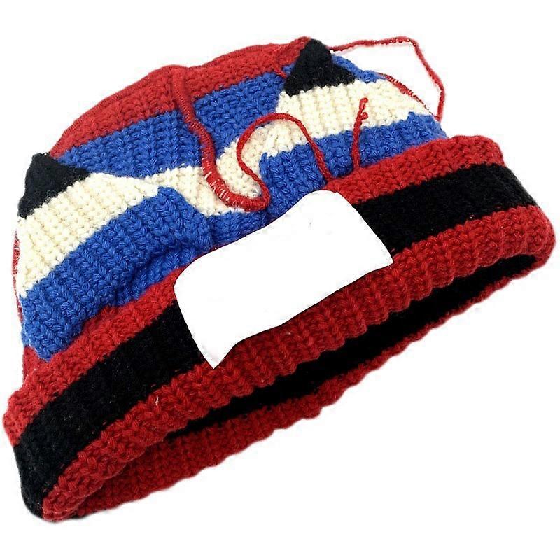 Fashionable Striped Cuff Beanie Hat Kawaii Pig Knitted Hat All-match Winter Hat Gift for Halloween Christmas New Year Red
