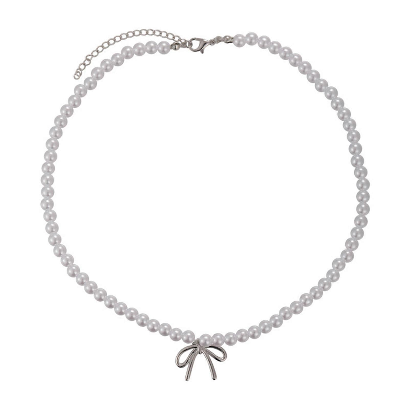 Fashionable Pearls Earrings/Neckchain Elegant Earrings/Necklace with Delicate Bowknot Delicate Pearls Neckchain/Studs