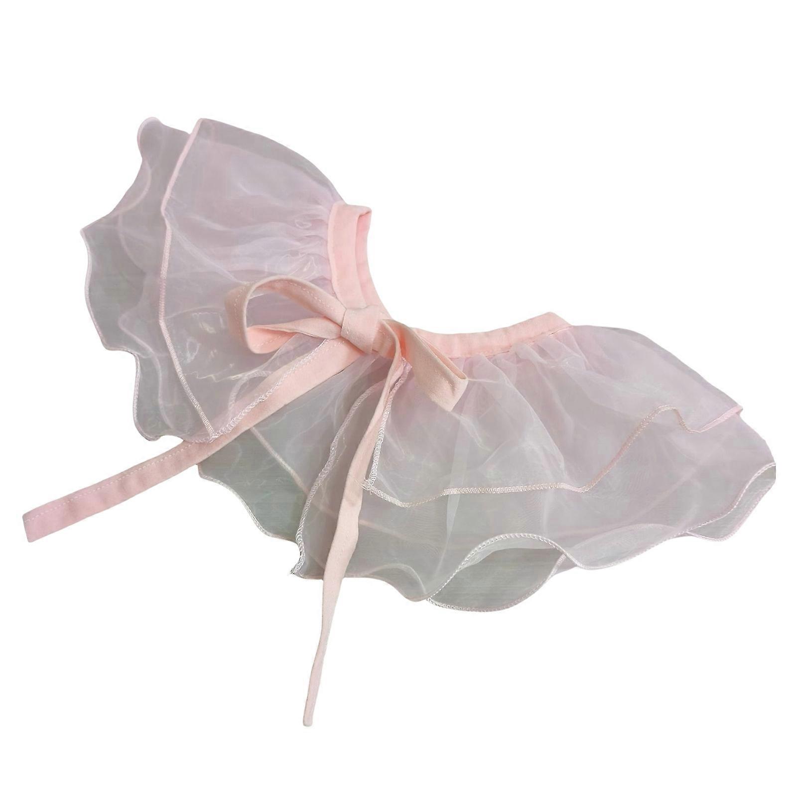 Fashionable Pink Organza False Collar Ties Bows Front Double Layer Shawl Capelet for Collarless Blouse and Dress Decors pink11