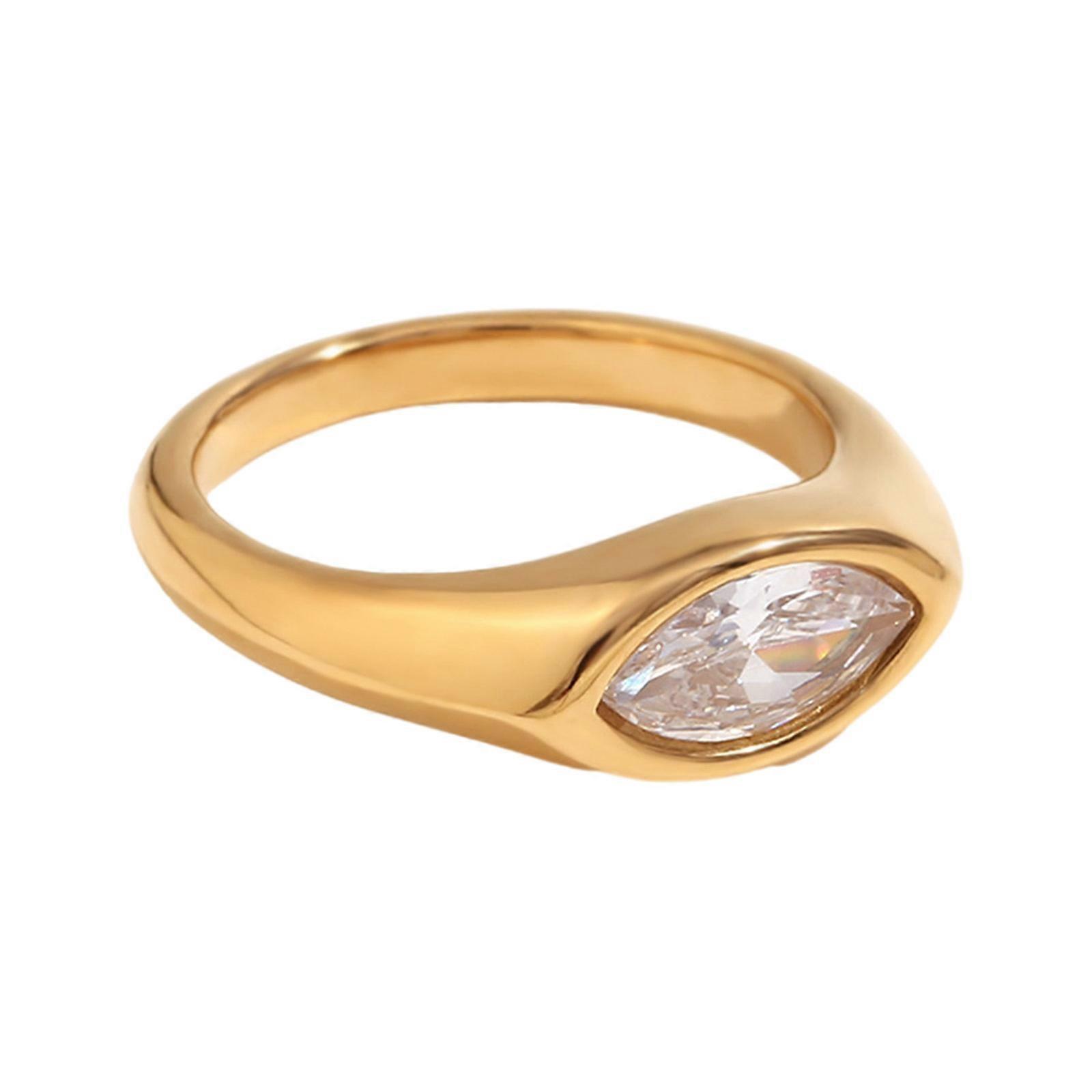 Fashionable Horse Eye Zircon Seal Ring 316L Stainless Steel Finger Accessories Tarnish Resistant Everyday Wear Jewelry