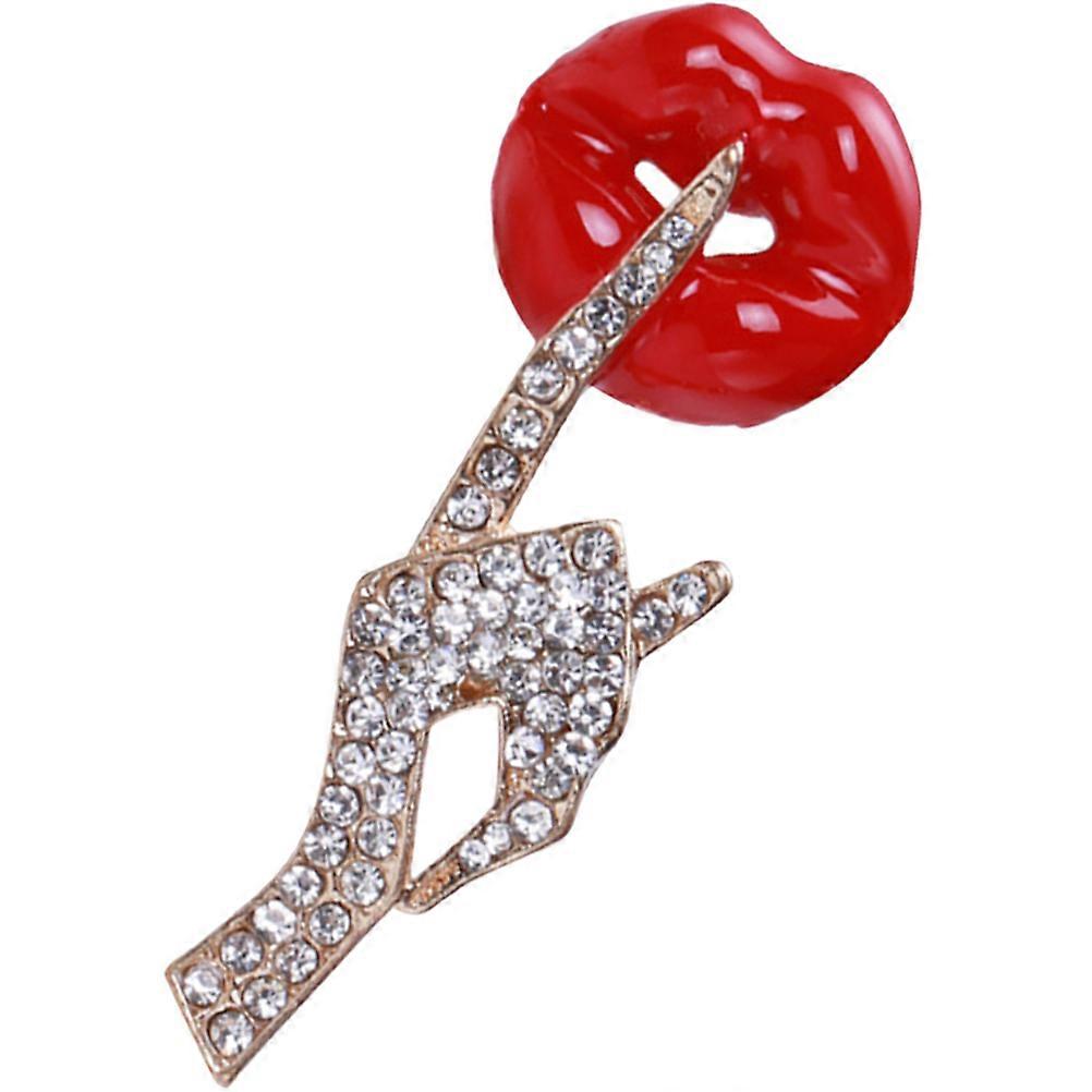 Fashionable Metal Brooch Pin Red Rhinestone For Everyday Wearing 4.8x1.8cm 1Set