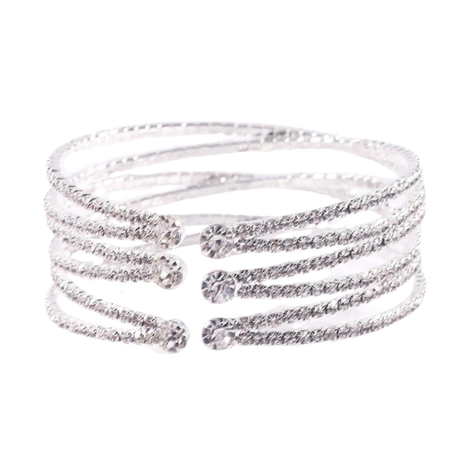 Fashionable Rhinestones Cuff Bracelet Crystal Layered Bangle Accessory Statement Jewelry for Weddings and Parties