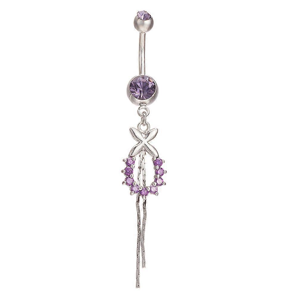 Fashionable Hollow-carved Oval Belly Navel Ring Stainless Steel Body Piercing Jewelry Purple