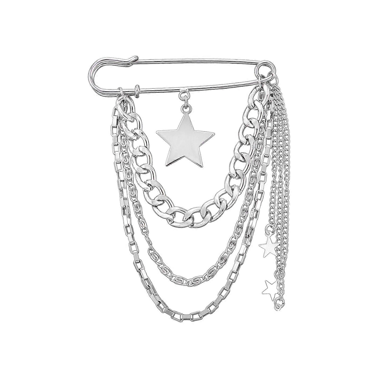 Fashionable Alloy Star Chain Brooches Jewelry Y2k Style Badge Pin Adornment Elegant Chain Pin for the Fashion Enthusias