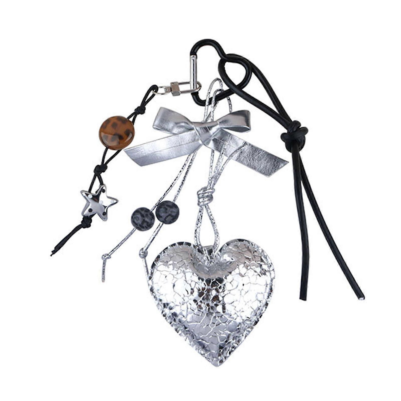 Silver Love Heart Leather Resin Bowknot Pendant Keychain Charm for Fashionable Women and Unique Styles Enthusiasts