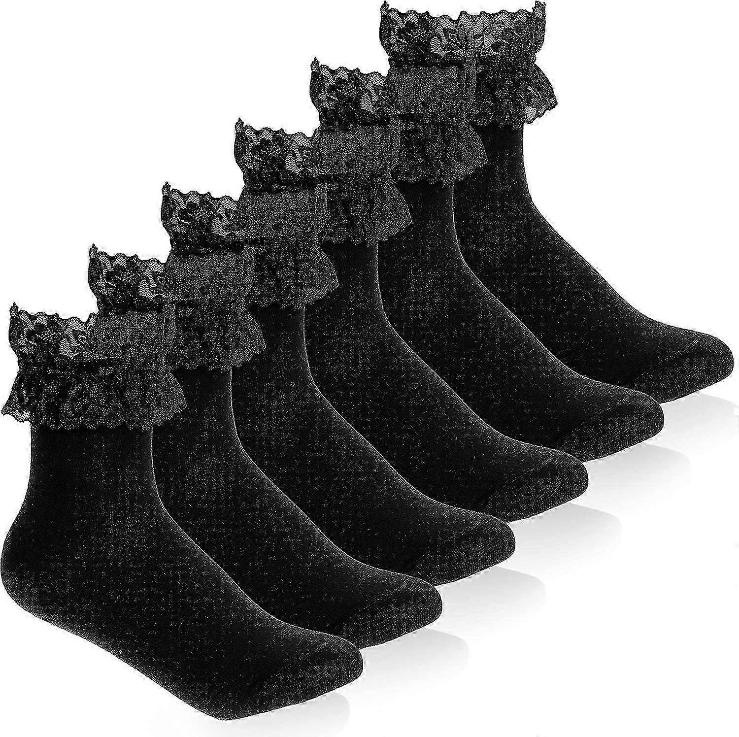 Fashionable Women's Girls Princess Lace Ankle Socks - 6 Pairs Set