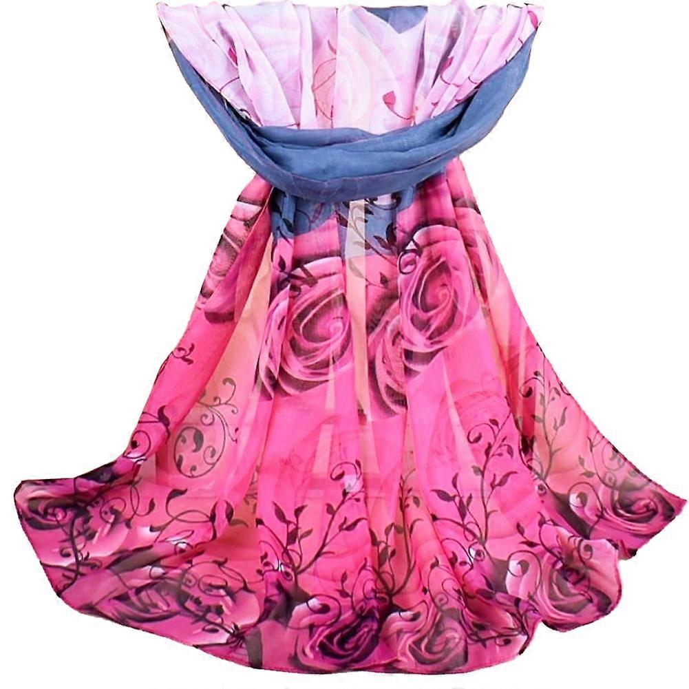 Fashionable Women Floral Print Chiffon Head Scarf Ladies Scarf Shawl (Rose Red)