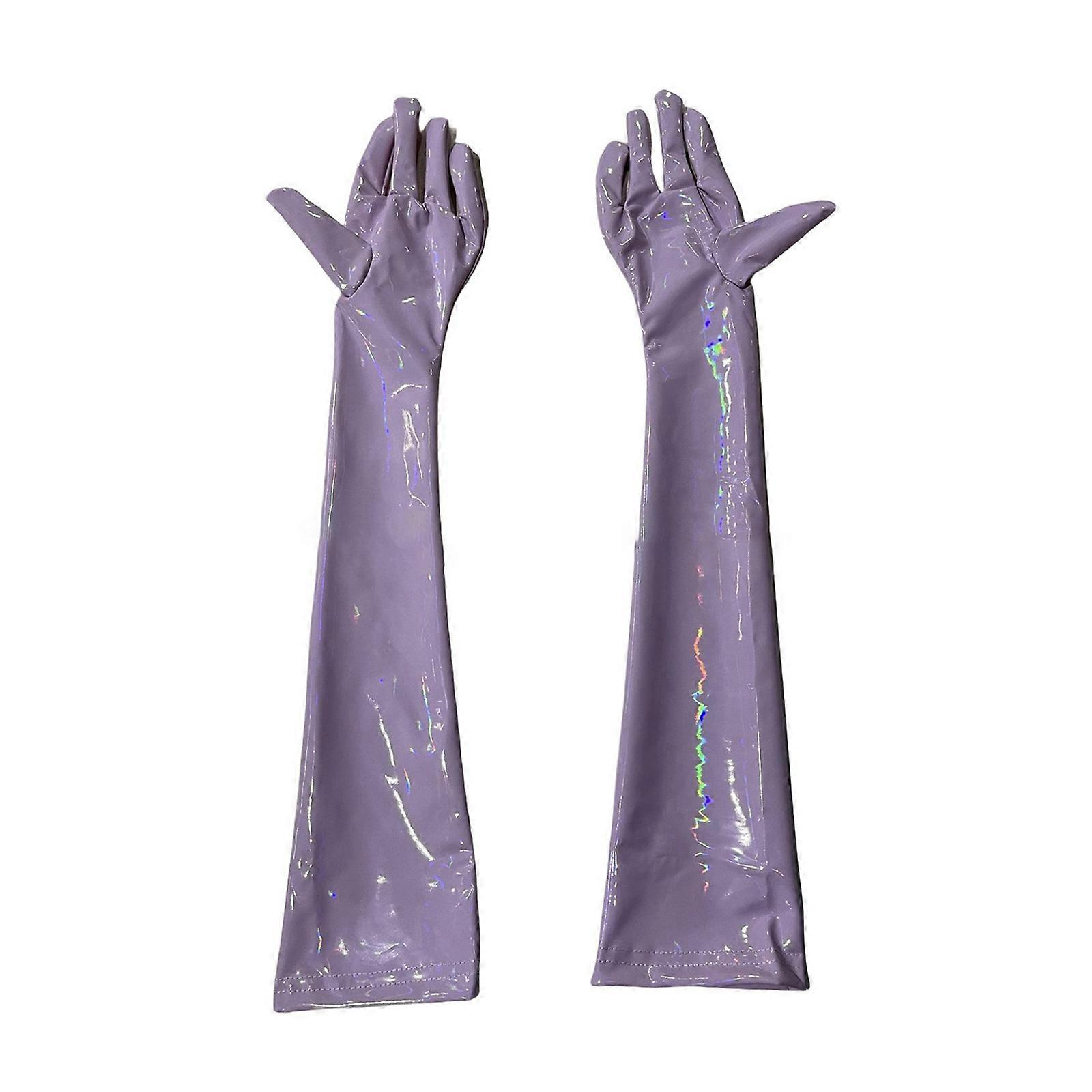 Fashionable Women Long PU Leather Gloves High Gloss Gloves Armwear for Roleplaying Game and Special Occasion Wear Light Purple