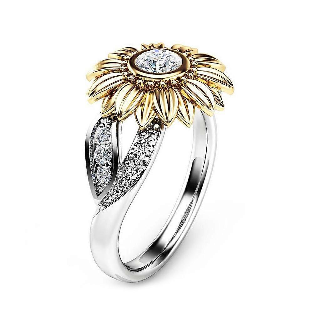 Fashionable Female Copper Engagement Round Sunflower Ring with Zircon Decoration 6#
