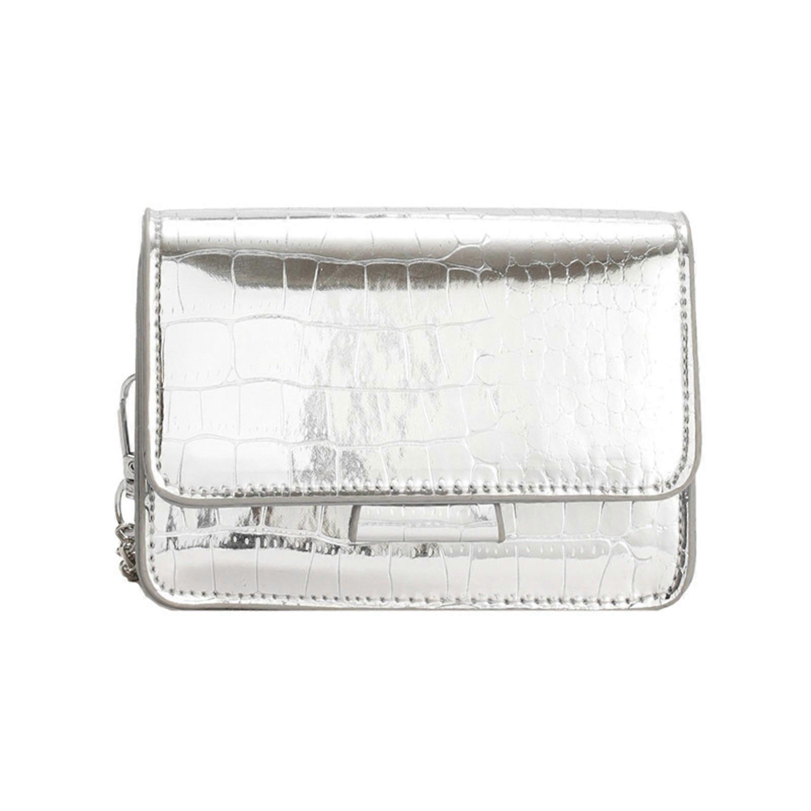 Fashionable Small Crossbody Bags PU Leather Satchel Glossy Shoulder Bag with Chain Strap for Women and Girls Silver