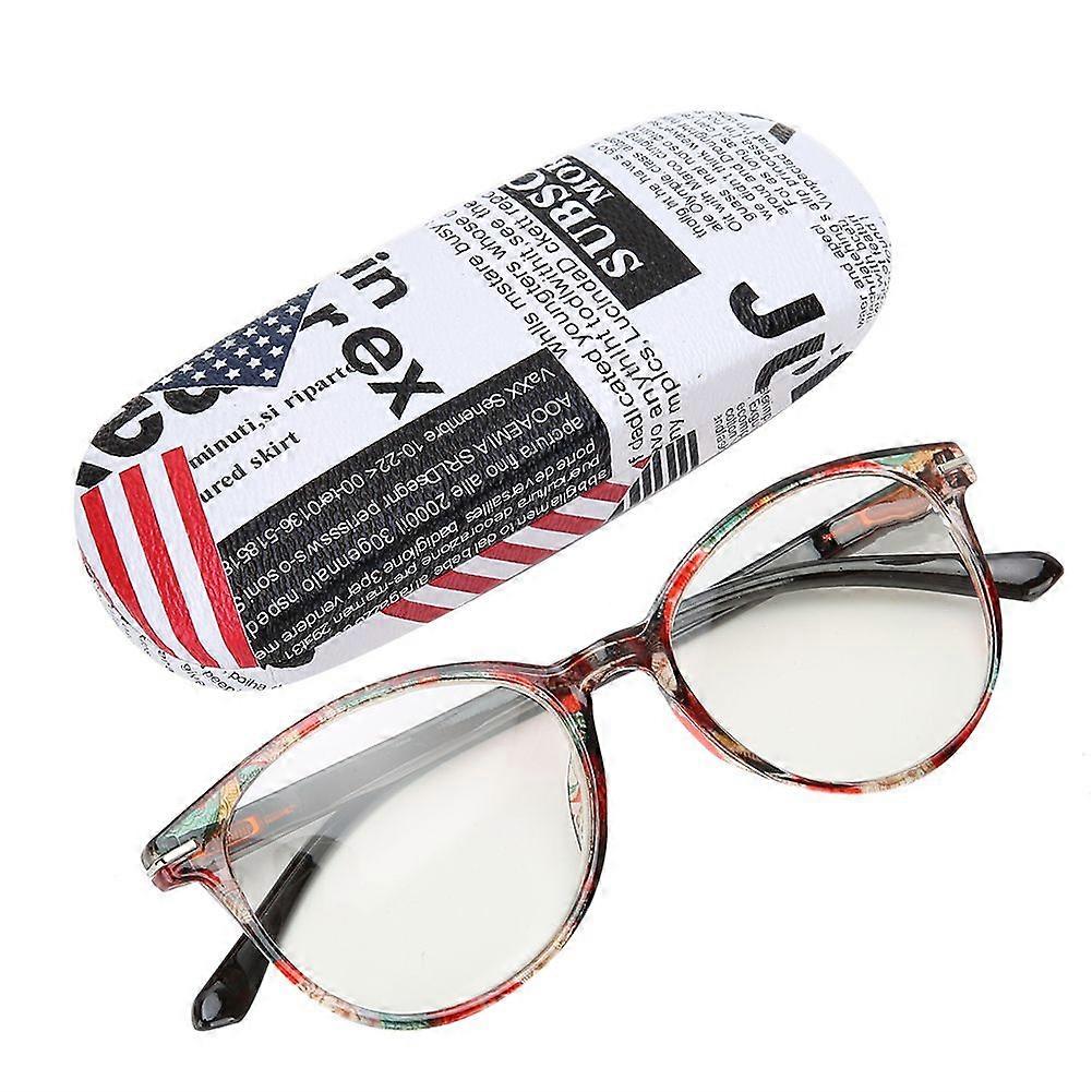 Fashionable Reading Glasses Elderly Presbyopic Glasses Portable Eyeglasses With Storage Box(+350 Tea Color Frame)YMMR)