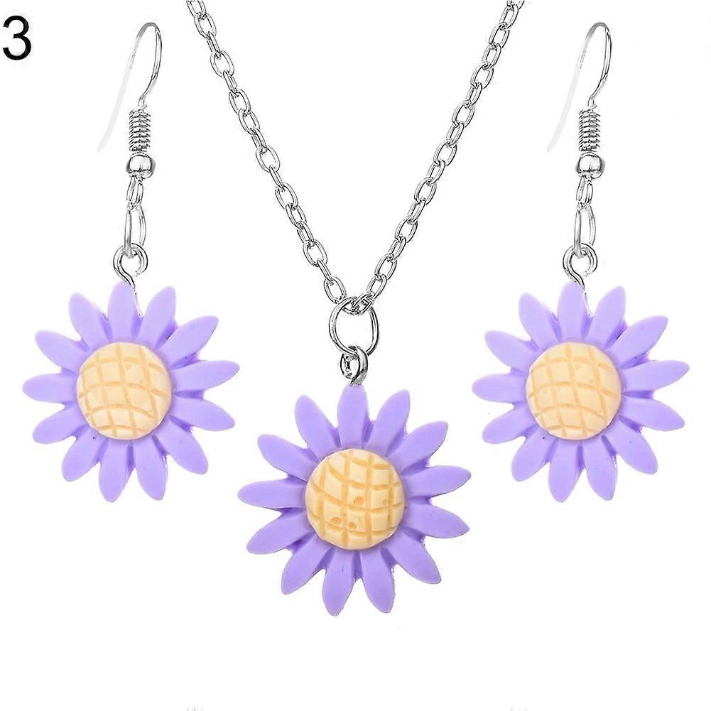 Fashion Sunflower Pendant Dangle Hook Earrings + Necklace Women Jewelry Set