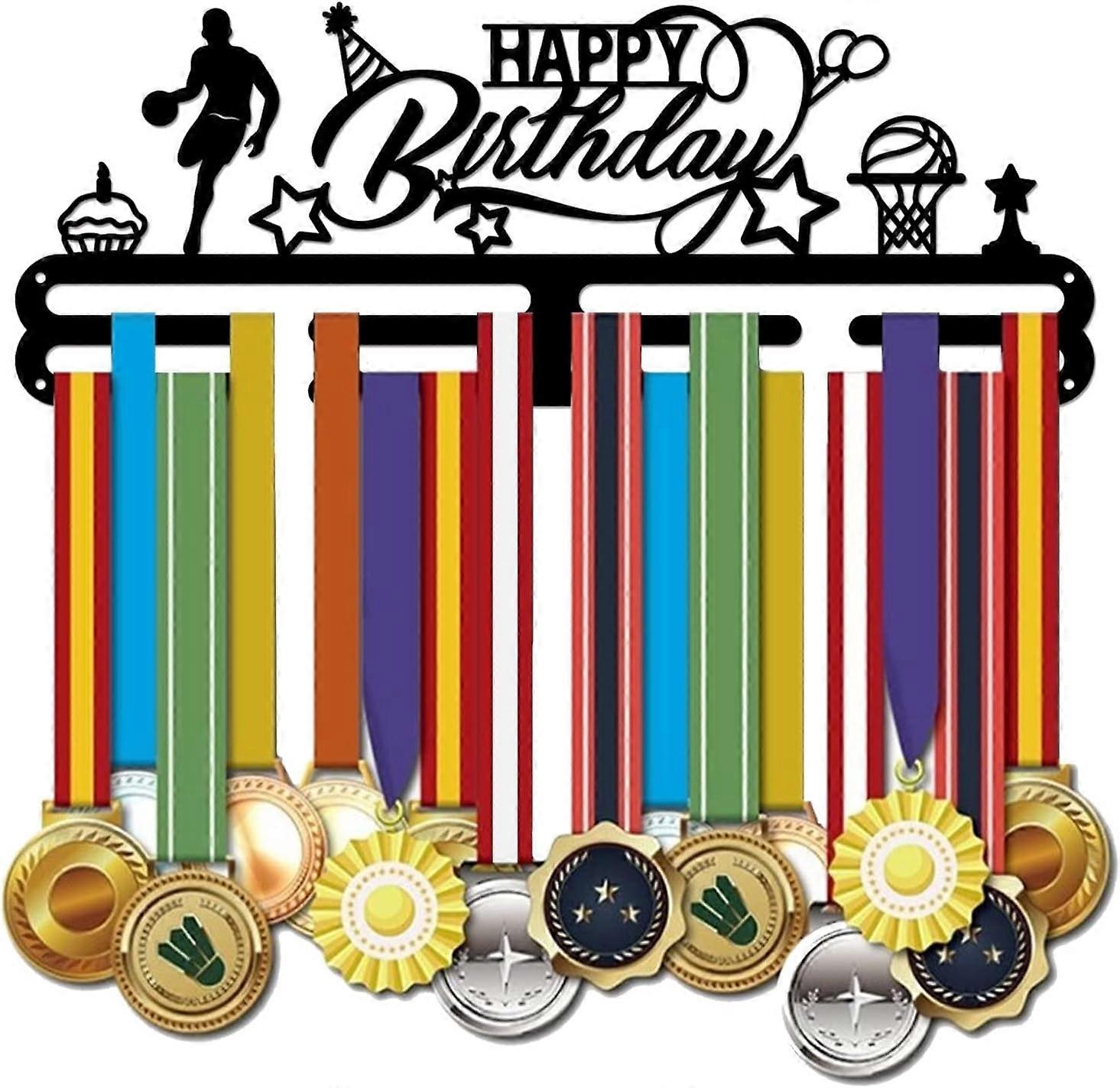 Basketball Medal Display Hangers: Our theme for this medal holder is basketball. Basketball is one of everyone's favorite sports, have a basketball medal display to collect the medals you have won on the court and let your honor show. next to people showing basketball action, Happy birthday and cake design, is the best birthday gift for your family or friends.Perfect Gifts: Medals mean work and struggle hard. So we should proud to display all of your hard-earned medals on this medal hanger. It is a perfect gift for friend or family or for your kids ,celebrating the beautiful memories with your loved ones.Hang More Medals: This product is about 40cm long, 15cm wide. With a layered design, there are a total of 8 layers of railings for hanging. You can hang your own medals by category. Open hook designed, you can easily store and take out hard-won medals. It can accommodate more than 60 medals.Durable Material: Medal hangers is made of sturdy iron, surface treatment paint black matt, for more durable and efficient, long-lasting rustproof, waterproof, no fade, and stain-proof. smooth edges can prevent accidentally scratched effectively.Ease of Install: This wall hook is fixed with nails perforated, so that the product is not easy to fall off, and has stronger bearing capacity than ordinary sticky hooks, so it can be used with confidence. (Package includes enough screws).
