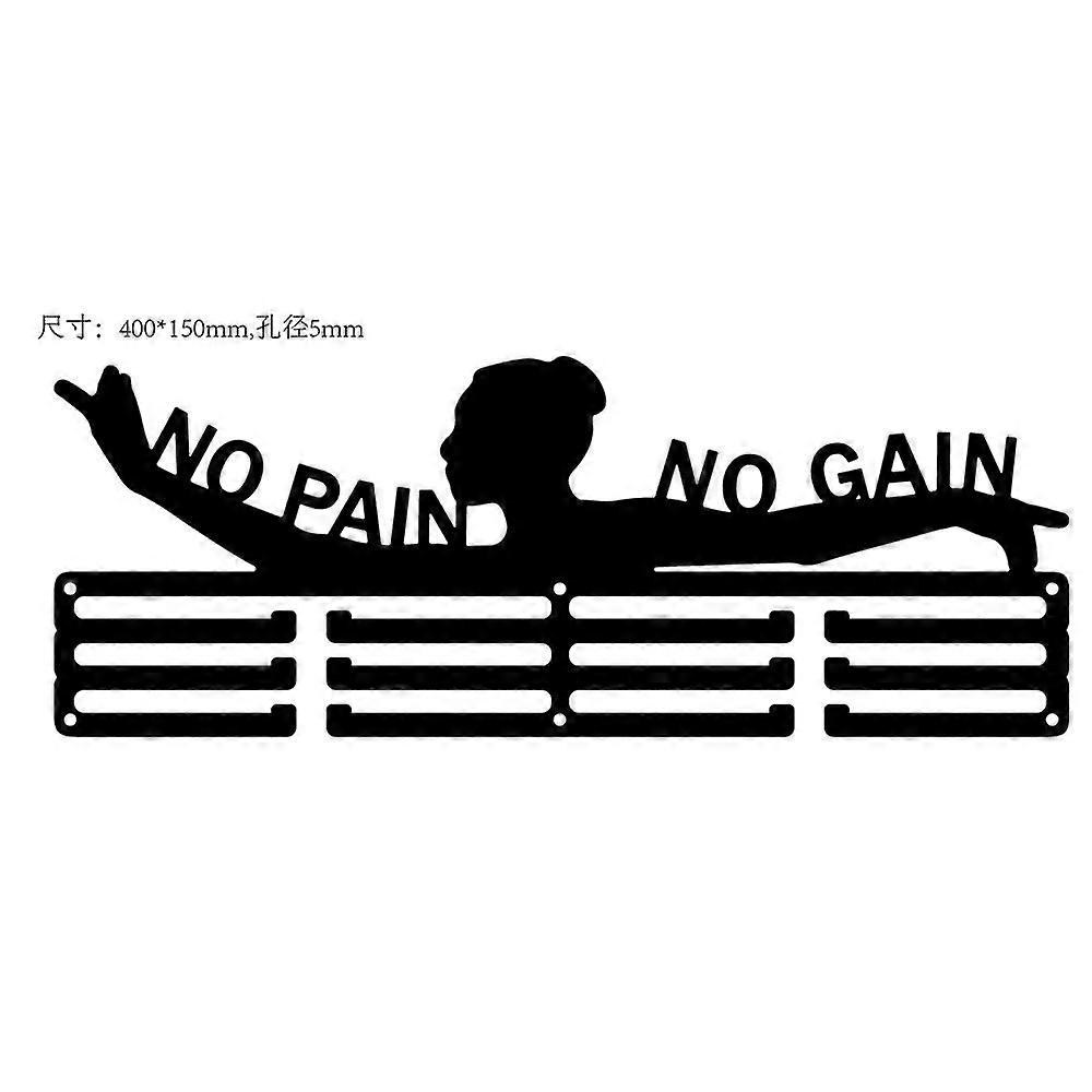 Fashion Iron Medal Hanger Holder Display Wall Rack 3-Line with Screws Word NO PAIN NO GAIN Human 150x400mm Hole: 5mm