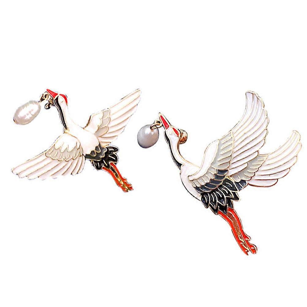 Fashion Accessory Oil Drop Brooches Breastpins For Clothing In Assorted Color Featuring Versatile Crane Shape 2Pcs